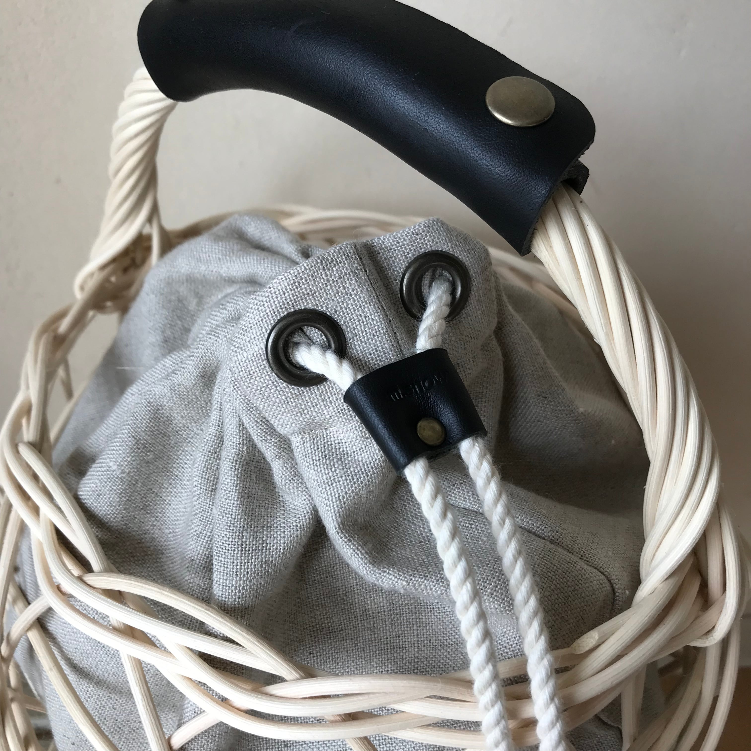[受注製作] MSNOM kago egg リネン巾着セット (カゴバッグ)